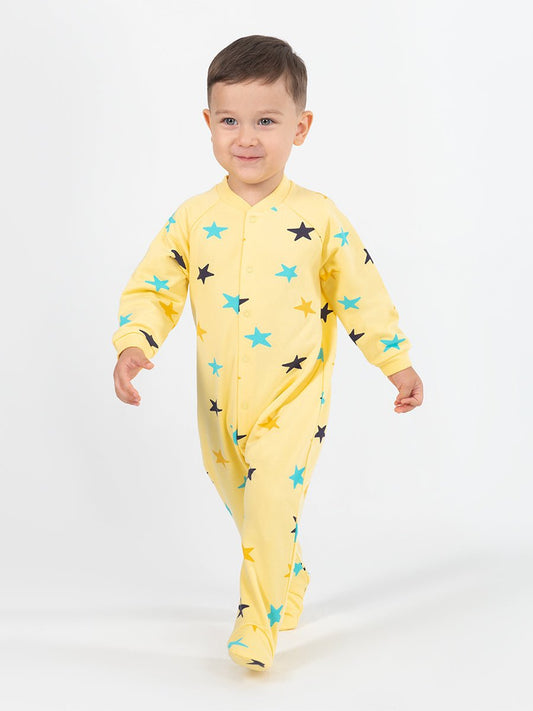 Newborn Baby Boys Yellow Bodysuit with Stars Print