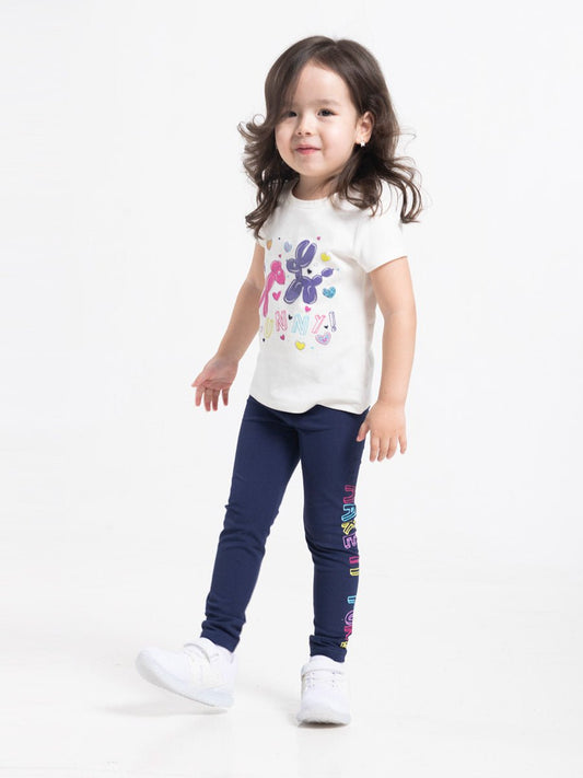 Girls Dark Blue Leggings with Make It Fun Print