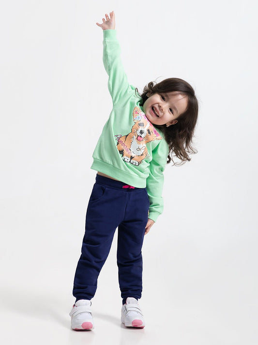 Girls Dark Blue Pants with Sunshine Embroidery