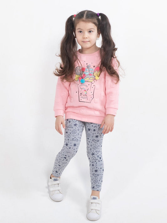 Girl Pink Leggings with Funny Doodles Print