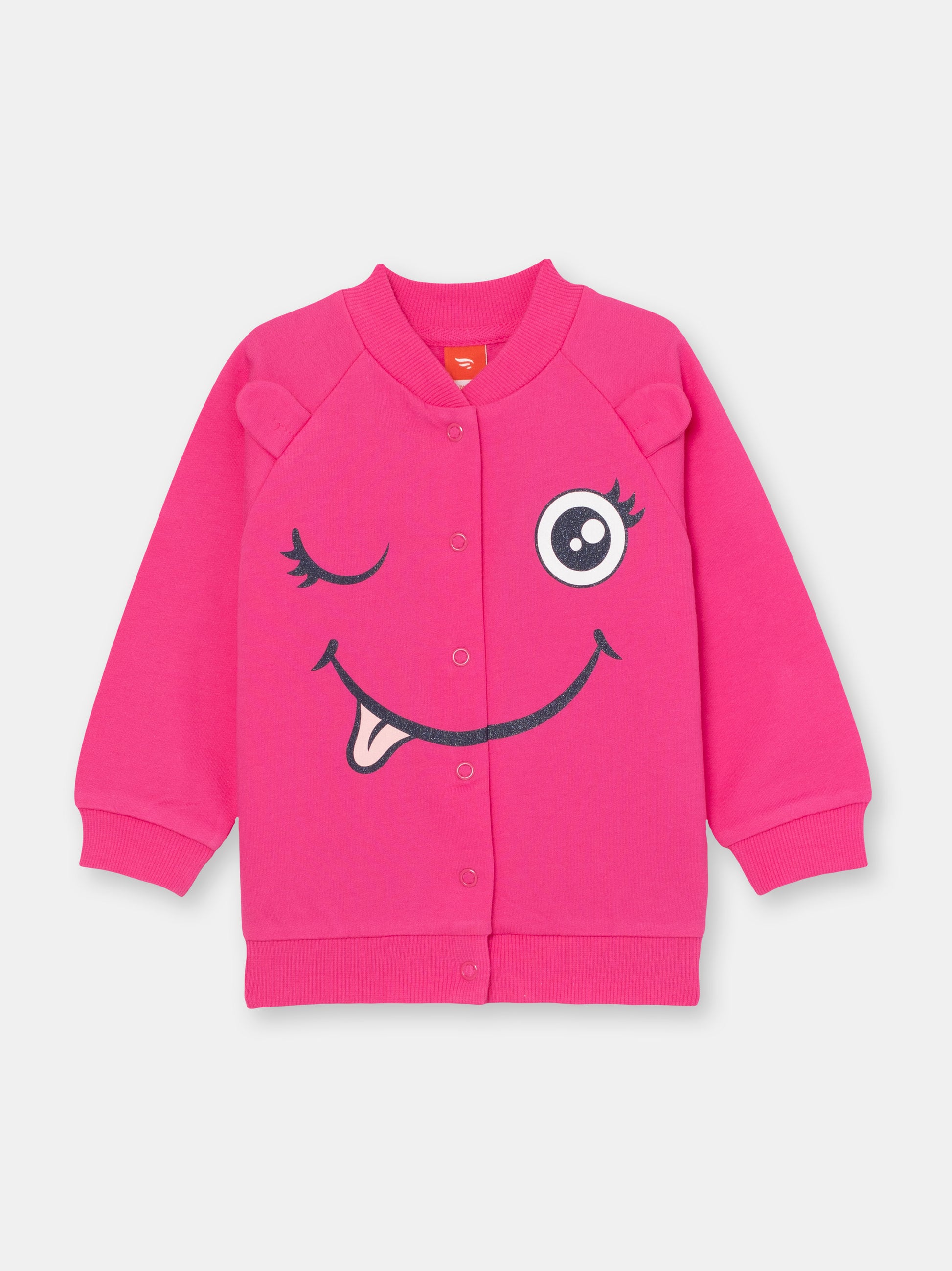 Feeling the need to get your little one something cozy and cool, but don't have time for shopping? You're in luck! This bomber jacket is an instant fix - ideal for kids with its perfect, comfy fit, this stylish bomber will keep your angel nice and warm. The material is 100% natural cotton and feels soft to the skin. Illustrated with a friendly green monster face on the front and two cute ears, this bomber in eye catching raspberry color is the perfect add on for the season.